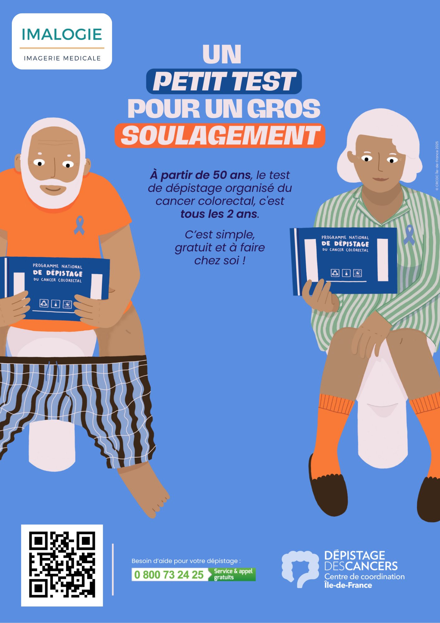 En France, un programme national de dépistage organisé existe pour les personnes de 50 à 74 ans. Tous les 2 ans, vous pouvez réaliser un test immunologique (recherche de sang invisible dans les selles) offert 100 % pris en charge par l’Assurance Maladie.